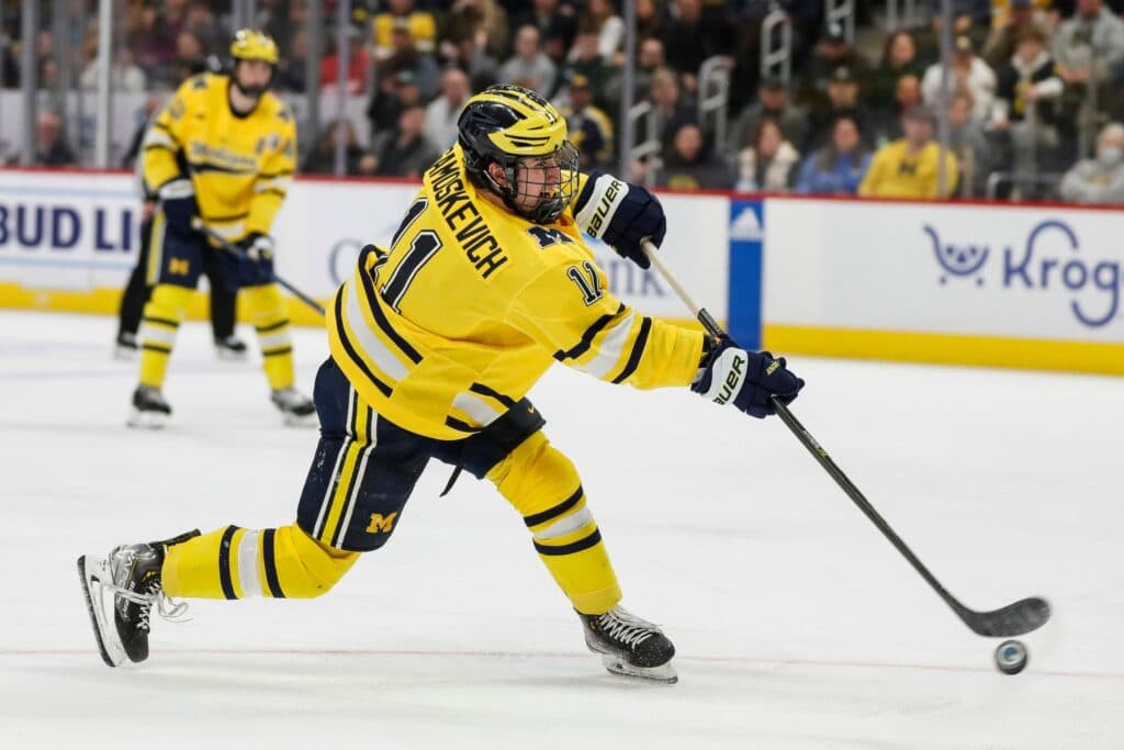 Samoskevich was never a huge scoring threat in the USHL. Instead, he was known more for his smarts, the way he handled and distributed the puck, and how difficult he was to steal the disk from. That was only amplified during his two-year run with the University of Michigan, and, this past year, he put up 20 goals and 43 points on the team’s top line. Samoskevich then finished the year with AHL Charlotte, where he had two assists in two regular season games and four assists in seven playoff contests. That’s an excellent start to his pro career, and he’ll likely return to the Checkers to get some more seasoning. There’s a very good chance he’ll become a valuable middle-six winger in a couple of years.