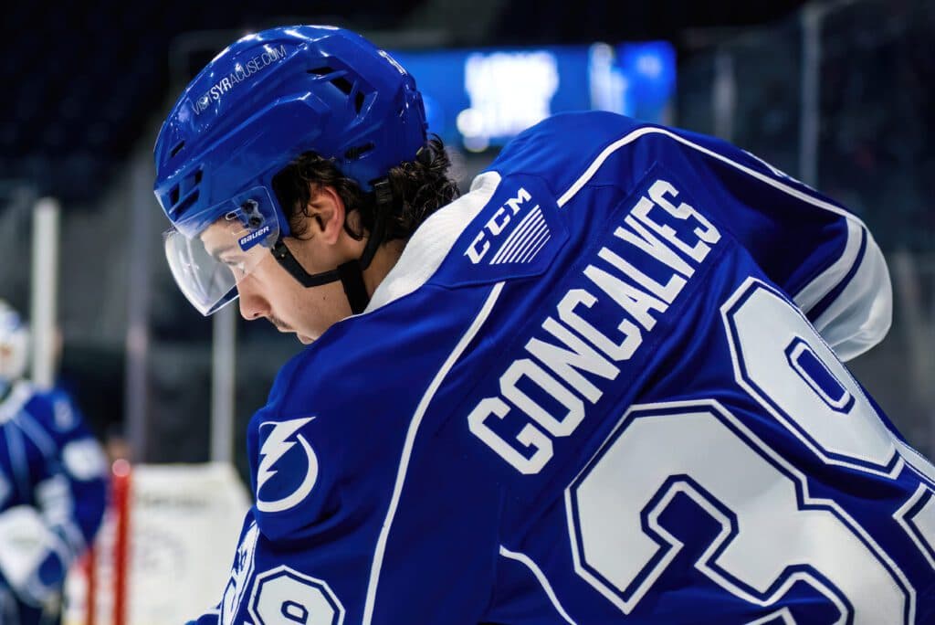 After a good rookie season in 2021-22, Goncalves upped the stakes with an electric 41-assist, 54-point campaign with Syracuse. The playmaking center has an excellent release that he hasn’t displayed a ton in the AHL, but his overall offensive game feels more dangerous than it did in the WHL. He also possesses a quick top speed that makes him difficult to defend against. His own-zone play could prevent him from being an everyday NHLer, though.