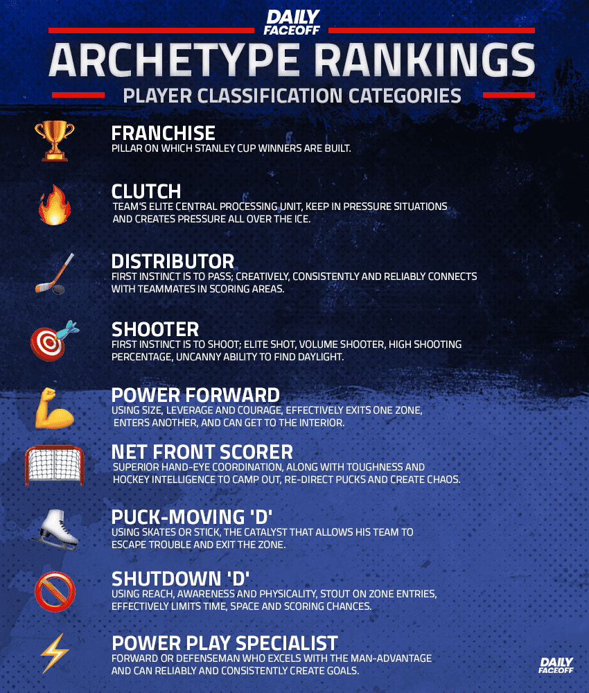 We are unveiling Daily Faceoff’s first-ever “Archetype Rankings,” as a way to classify players into different categories. An archetype is a concept of form, an attempt to define the fundamental characteristics of something.