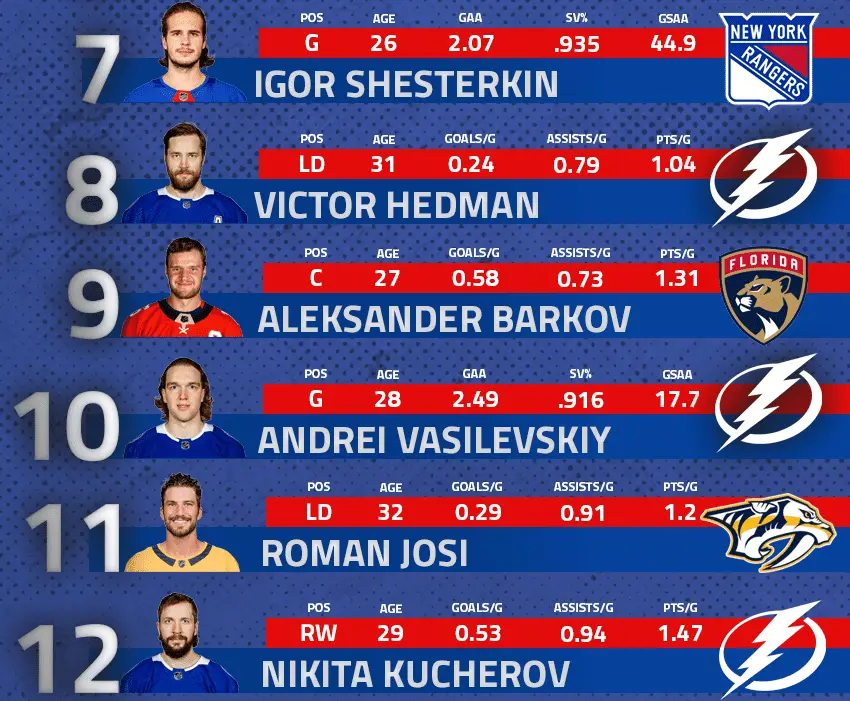 There were some agonizingly close calls. Heiskanen was universally respected but fell short because of his relative lack of point production that the other three defensemen have demonstrated. Front office personnel gave the nod to Sorokin over Saros based on the upcoming season projection and his rise into Vezina conversation last year. “Sorokin is a generational goaltending talent, I tend to view Saros more as a workhorse,” one front office member said. Another lobbied for the inclusion of Hellebuyck, who is coming off a difficult campaign in Winnipeg and is now facing the unknown after a tumultuous offseason.