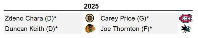 Now, this is a HHOF class. In any era. In any fan’s eyes. Four first ballot titans of their time. Chara earned Norris votes 14 times in a fear-inducing 24-year run. Keith is a two-time Norris winner, with three Cups and a Conn Smythe to boot. “Jumbo” Joe Thornton, 12th all-time in career points, is both one of the best playmakers in NHL history and one of its most beloved dudes. Despite an uneven career, Price was unmatched at his best. One of three goaltenders to win MVP since 1962, he remains an inspiration to Canada’s Indigenous community off the ice. This should be just the third class in history with four first-ballot players (2007, 2009).