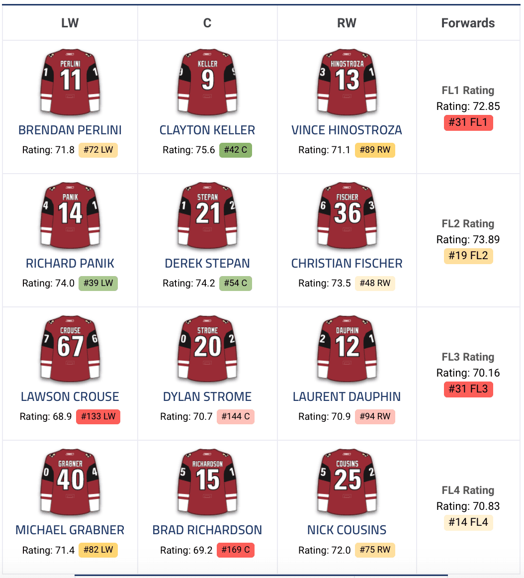 Panik had 17 points in 35 games for Arizona after being acquired from the Blackhawks in exchange for Anthony Duclair. Dylan Strome and Lawson Crouse highlight a young bottom-six for Arizona. The two 2015 first-rounders have struggled to transition to the pro level. The potential is still there, but Arizona would love to see them figure it out sooner than later. 2019 will be a telling year for their development.