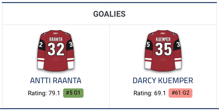 Since the start of the 2014-15 season, no goalie in the NHL has a higher SV% than Antti Raanta. The Finnish netminder is coming off another stellar year that saw him post a .930 SV% and 2.24 GAA. He has proven himself to be an elite goaltender but playing for Arizona limits his win potential. Still, he is consistent as any goalie in the league and could singlehandedly accelerate Arizona’s rebuild. Despite all his success he’s never made more than 47 starts in a season. Durability and conditioning are the keys to a breakout season for Raanta. Darcy Kuemper proved himself to be a competent backup with the Wild and Kings, but struggled after being acquired by the Coyotes last season. He should be better than the .899 SV% he posted for Arizona, but don’t expect him to threaten Raanta for playing time.