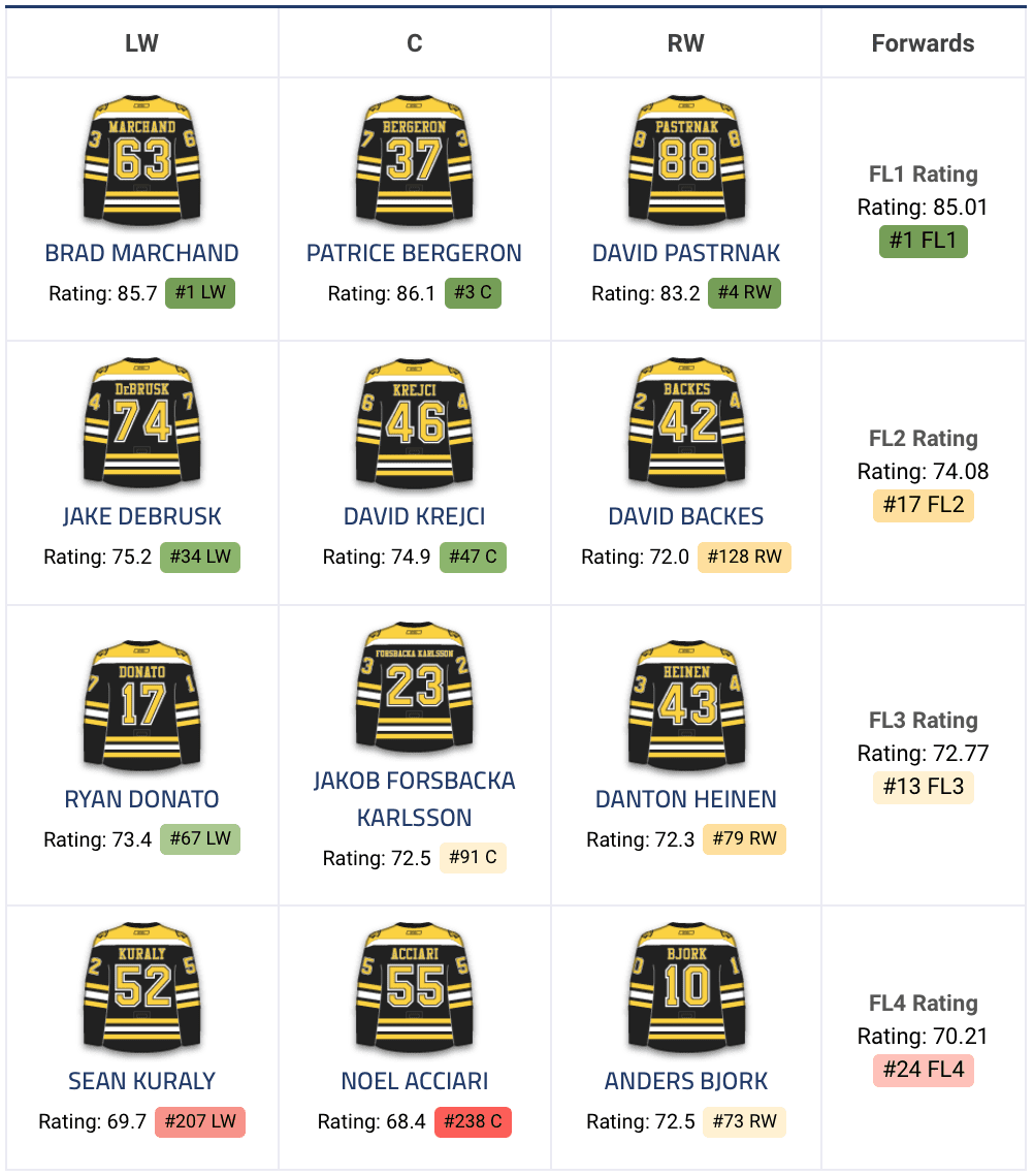 The 2018-19 Bruins will live and die by their first line, arguably the most dominant in the league. The terrifying trio of Brad Marchand, Patrice Bergeron, and David Pastrnak were the best line in the NHL last season, according to Corsica Hockey Player Ratings. The three of them boasted a 58.86 CF% at 5v5 and produced 33 scoring chances per 60. The Bruins scored 28 goals at 5v5 with their top line on the ice and surrendered just 16. They are a nightmare to match up against and can force a team’s first line to play in their own end all night long. They will be one of the best lines in the NHL again this season and they are the heart of this Boston team.