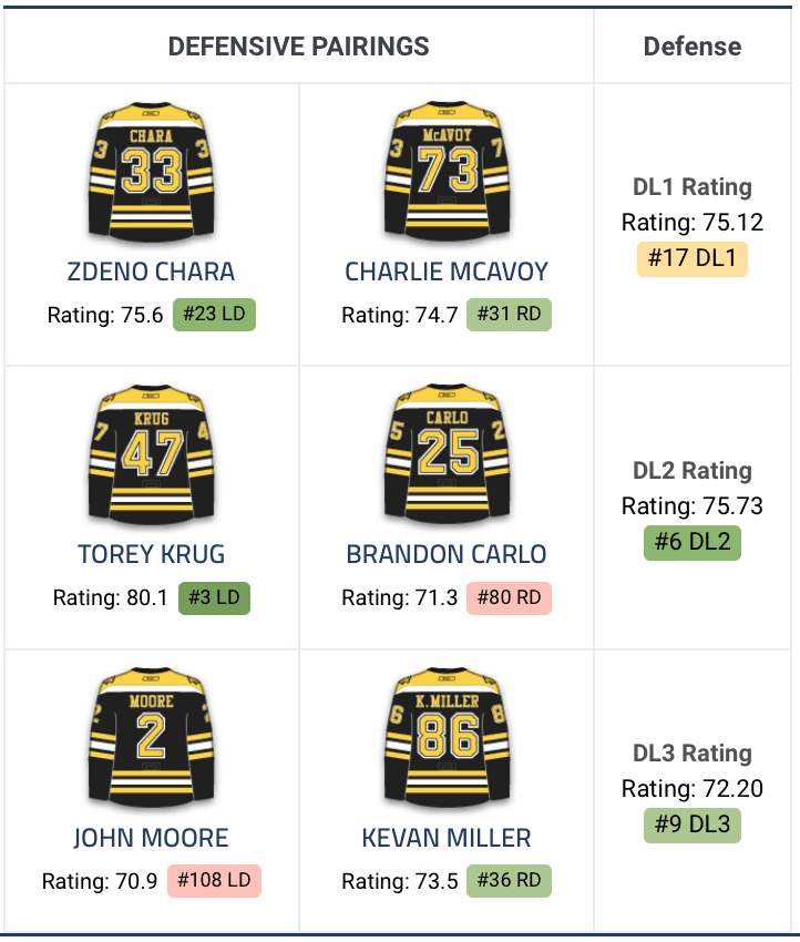 Kevan Miller is an underrated defenseman that gives the Bruins a lot of depth on the blueline. He would feature in the top four of most teams and would be the one to move up the depth chart should any of Krug, Chara, or McAvoy miss time. John Moore and Brandon Carlo are nothing to write home about but are more than qualified to be the fifth and sixth defensemen. The strength of their blueline helps mitigate a lack of depth up front.