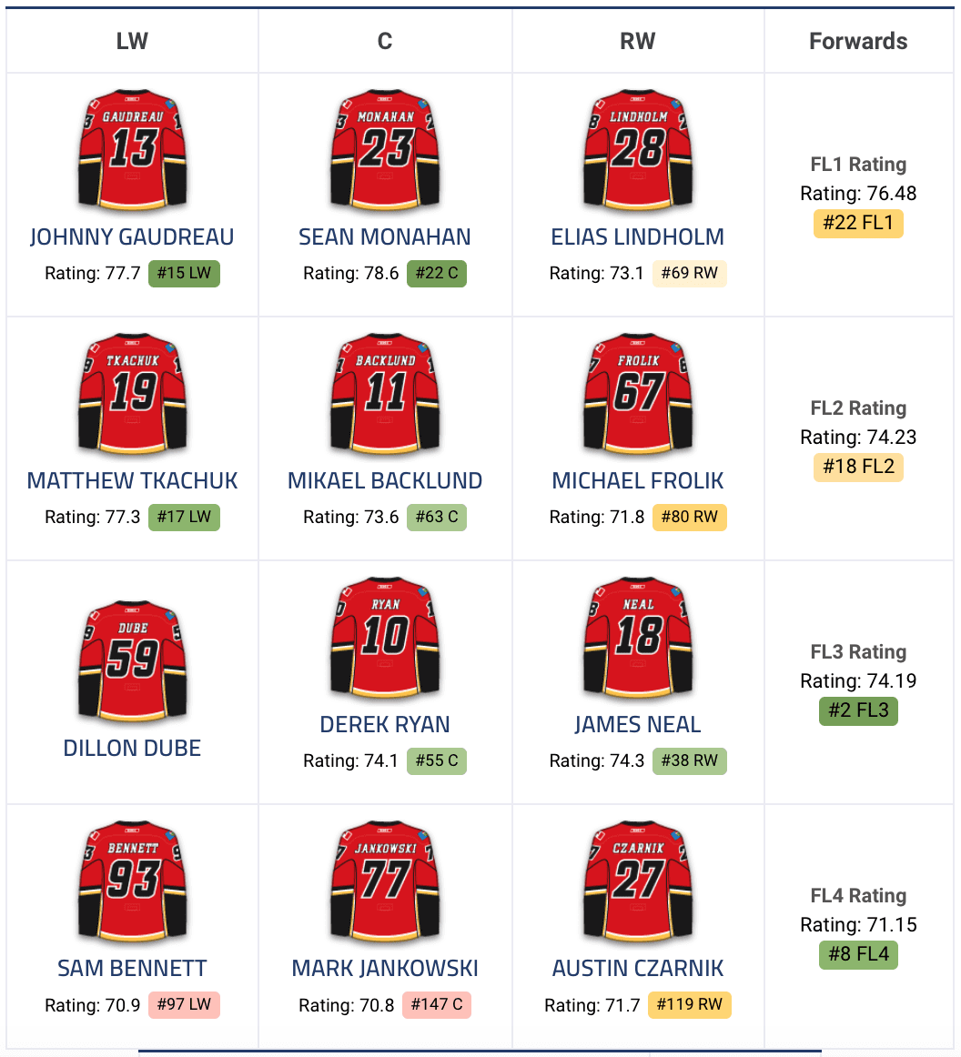 Calgary is expected to reunite the second line of Matthew Tkachuk, Mikael Backlund, and Michael Frolik to start the season. The trio doesn’t produce offense at the same rate as the premier second lines in the league, but they were an incredibly-effective shutdown line last season. They posted a 59.06 CF% at 5v5 together and surrendered just 22 scoring chances per 60. Despite their effectiveness at 5v5 this unit is ideally the third line on a contending team. However, at just 20-years-old, Tkachuk could flip that script if his offensive game continues to grow. His development will play a key role in improving the team’s secondary scoring this season.