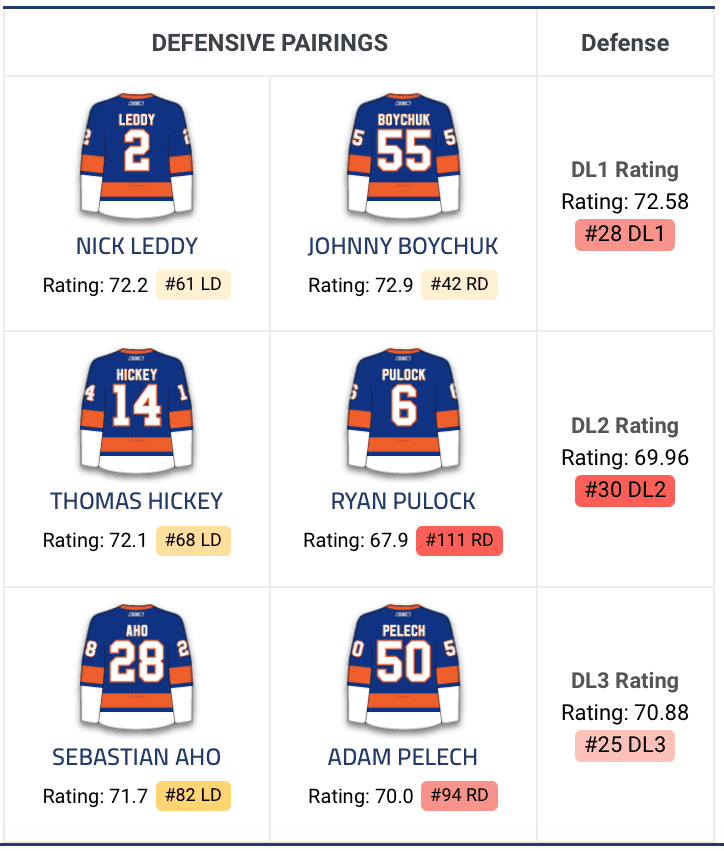 As I alluded to earlier, the Isles made no effort to replace the loss of Calvin de Haan, their most competent defenseman at 5v5 last season. It leaves them with little to no depth on the blueline, and it’s why you see Thomas Hickey and Ryan Pulock on their second pair right now. Pulock, like Leddy, is a respectable shot producer from the back end but struggles to contain the opposition. Pulock and Hickey also surrendered 30 scoring chances per 60 last season.