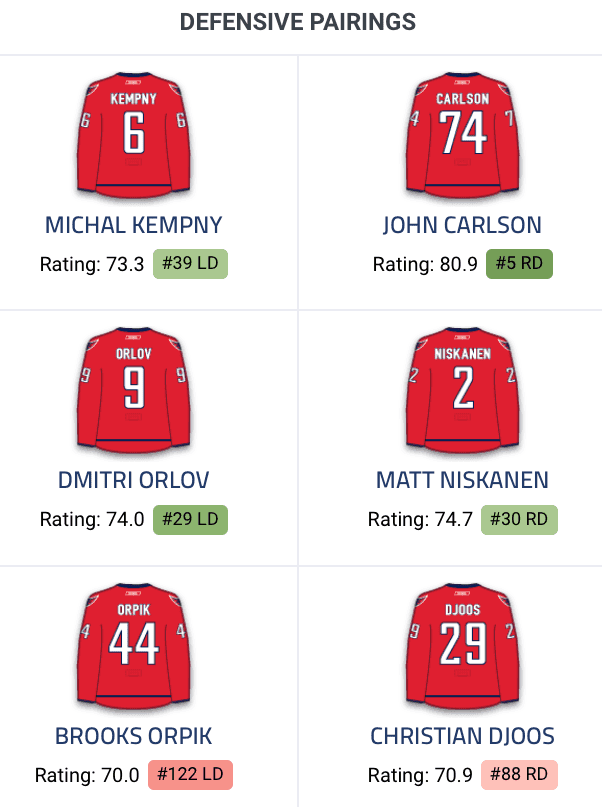 | DEFENSEMAN | Dmitry Orlov ($3,600) | Dmitry Orlov ($3,600) |