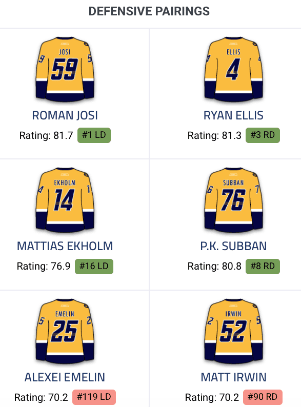 You can go back to confidently fading Nathan Mackinnon and Colorado 1 for game 5 on the road and should instead focus your energy on deciding which Nashville line you like most tonight. Nashville 1 undoubtedly has the higher ceiling as they see more ice time at 5v5 and on the powerplay, but they come at a steeper price and will still be tasked with handling Mackinnon and company at even strength. Nashville 2 has put up strong possession numbers all series against the depth of the Avs but their counting stats haven’t yet reflected that. My advice would be to let your budget dictate which line you go with tonight; if you prefer one of the high-priced options in the earlier games then you’ll want to go with Nashville 2. Of course, if you really love Nashville tonight, a five or six-man stack featuring components of both lines is certainly in play as well. If you’re considering adding a defenceman to either stack, P.K. Subban has better powerplay compatibility with Nashville 1, while either Roman Josi or Ryan Ellis would be a better fit with Nashville 2.