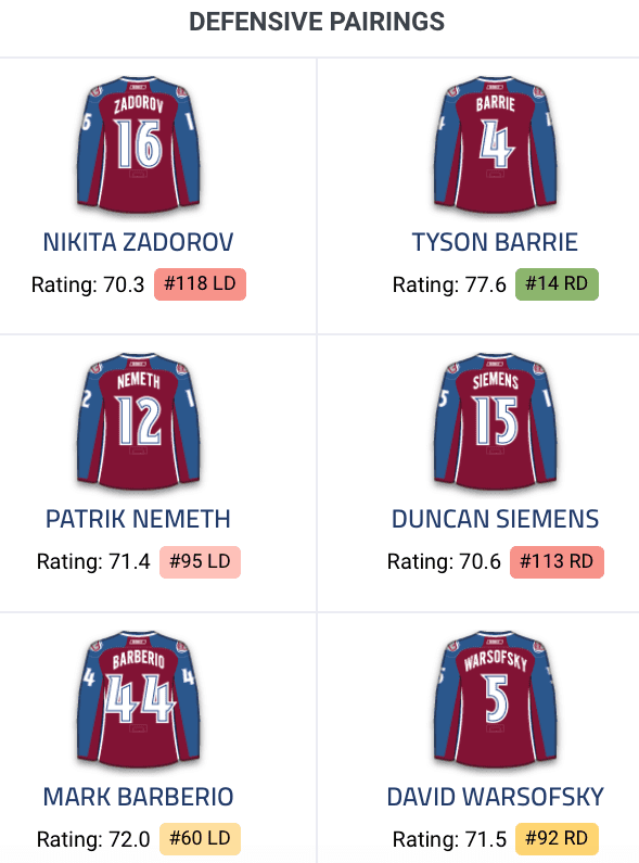 DEFENSEMANNikita Zadorov ($3,500)Tyler Myers ($3,900)