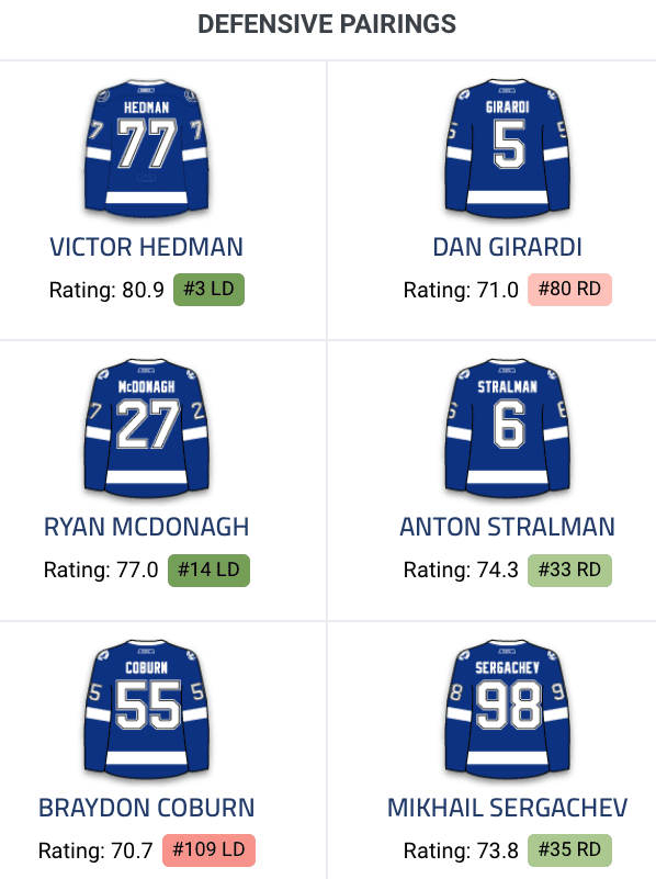 On the flip side of the matchup, Tampa Bay 1 makes for an excellent stack for all home games this series. They’ll have a harder time in games 3 and 4 when Bruce Cassidy can use the last change to hard-match the Bergeron line against them, but for now they should see some much more tolerable matchups against the depth of the Bruins at 5v5. Both Boston’s second and third lines have posted admirable 5v5 numbers all season long, but they simply don’t have the skill or the speed necessary to contain the likes of Steven Stamkos and Nikita Kucherov for a full 60 minutes. As always, you’ll want to have as much powerplay compatibility as you can alongside Tampa Bay 1, which right now means targeting both Alex Killorn and Victor Hedman.