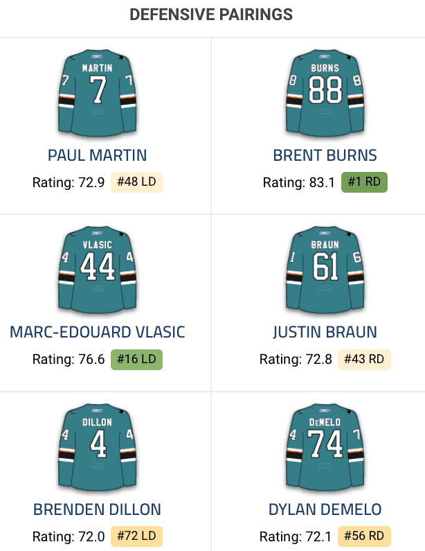 After a nightmare start to the series on Thursday night, things won’t be getting any easier for the Sharks on Saturday. San Jose lost Evander Kane amidst their seven-goal embarrassment in game 1 after he received a game misconduct for a high cross-check on Pierre-Edouard Bellemare out front of the Golden Knights’ net. Kane promptly received a one-game suspension and will miss Saturday night’s game as a result, leaving a massive hole on the Sharks’ top line. Timo Meier has jumped back up to replace Kane on the wing of Joe Pavelski, a regular spot for him before the Sharks’ acquired Kane at the deadline. While San Jose 1’s numbers with Meier are nothing to scoff at (37 scoring chances per 60), the void in skill left by Kane’s absence should be made glaringly obvious by the stifling play of Vegas 1 at 5v5. Against a line where scoring chances are going to be harder than usual to come by, you want as much skill and scoring touch as possible to capitalize on the few chances you might get. It’s hard to imagine a bounce-back performance from San Jose 1 without Kane, and it’s best to fade them until they have him back on home ice for game 3.