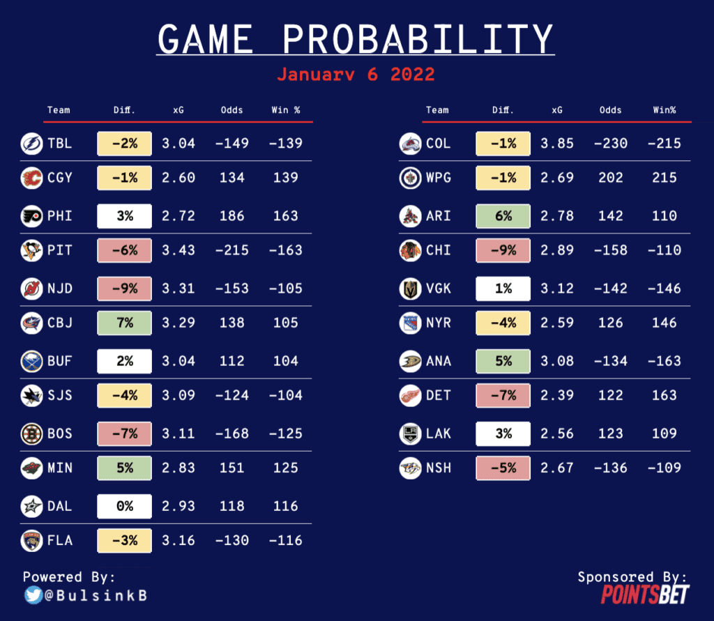 I will also provide some analysis on the best bets and update this post throughout the day to point out big injury news, lineup changes, and backup goalies starting.
