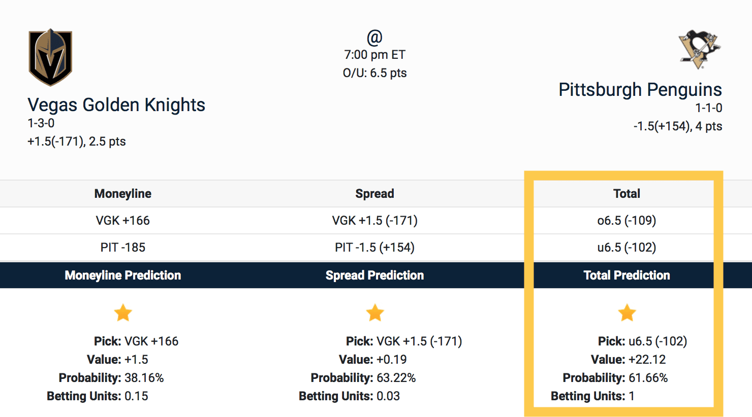 Vegas Golden Knights @ Pittsburgh Penguins — Over/Under | Under 6.5