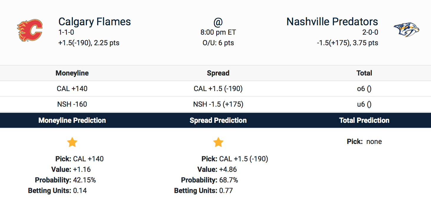 Calgary @ Nashville — (Spread | CGY +1.5)