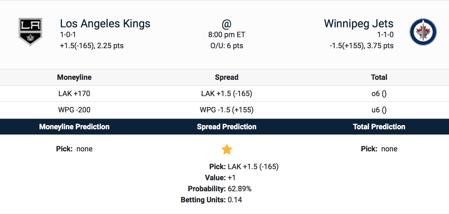 Los Angeles @ Winnipeg — (Spread | LAK +1.5)