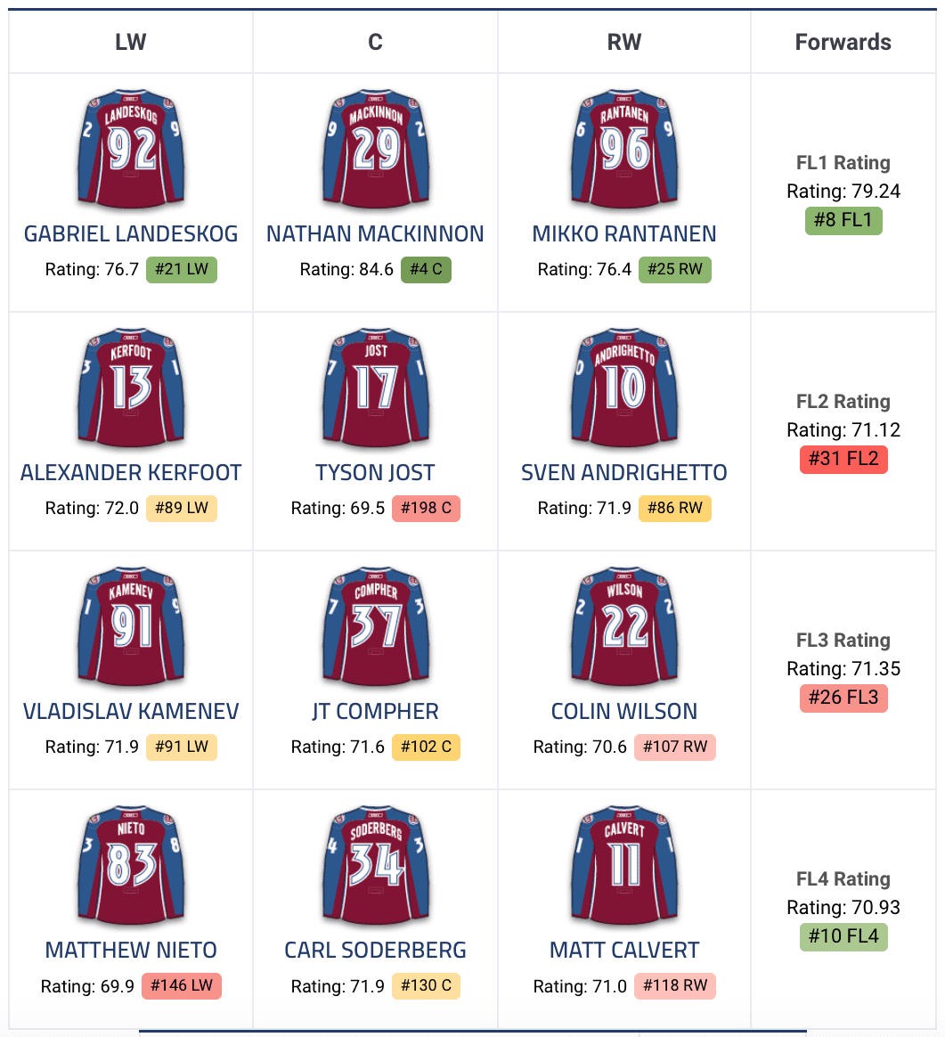 | N. MacKinnon (35) | N. MacKinnon (51) | N. MacKinnon (86) | Mikko Rantanen (9) | Mikko Rantanen (28) |