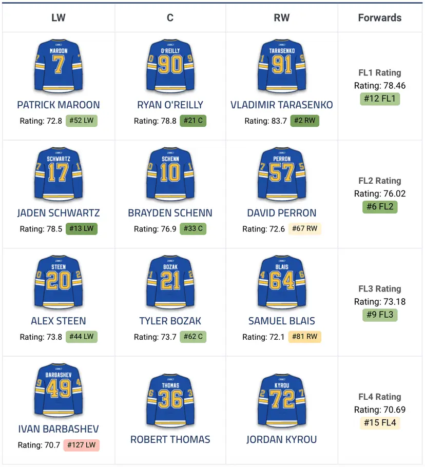V. Tarasenko (39) | Ryan O’Reilly (37) | V. Tarasenko (74) | Brayden Schenn (12) | Brayden Schenn (23) |