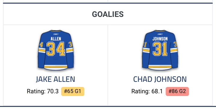 Jake Allen had a career-worst .906 SV% last season. He was flat-out outplayed by backup Carter Hutton, who led the league with a .931 SV% and 2.09 GAA. With Hutton gone Allen goes back to being the uncontested number-one and should experience somewhat of a bounce back from his dreadful 2017-18 season. His career. 913 SV% is mediocre at best but given how few shots the Blues surrender (29.7/GP in 2017-18), mediocrity is all they need from their goalie. Don’t expect backup Chad Johnson to at all threaten Allen for playing time like Hutton did.
