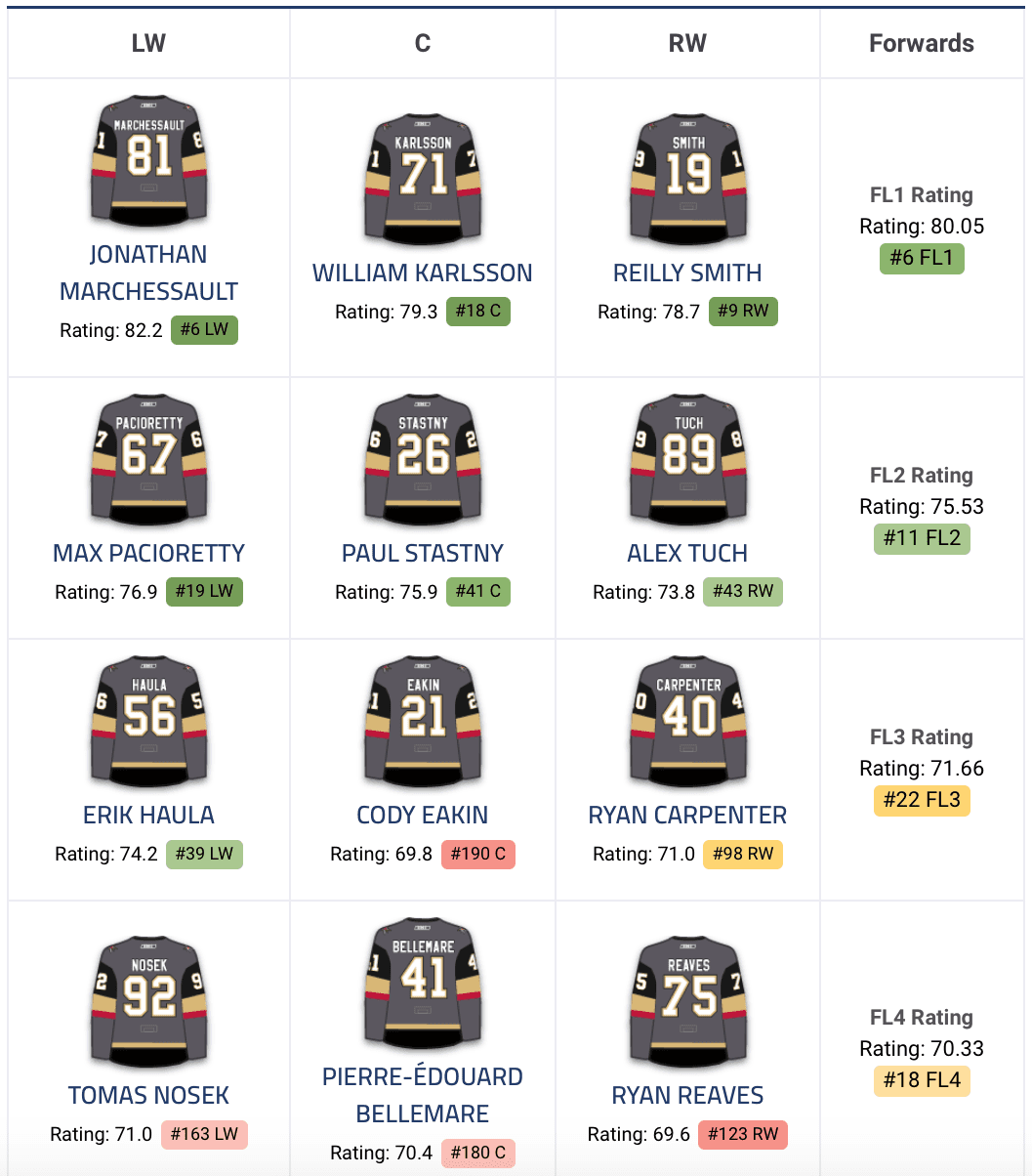 William Karlsson (27) | Max Pacioretty (31) | William Karlsson (55) | Reilly Smith (7) | Colin Miller (15) |