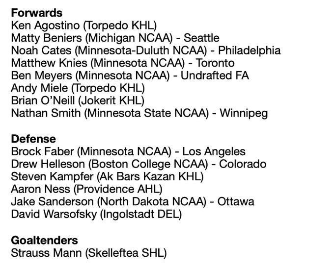 NEWS: Reporting with @chrismpeters, team and league sources tell @DailyFaceoff these 15 players have been invited to play for Team USA 🇺🇸 at #Beijing2022 Olympics. List is still fluid, not all have confirmed participation, and @USAHockey is actively adding others. ⬇️