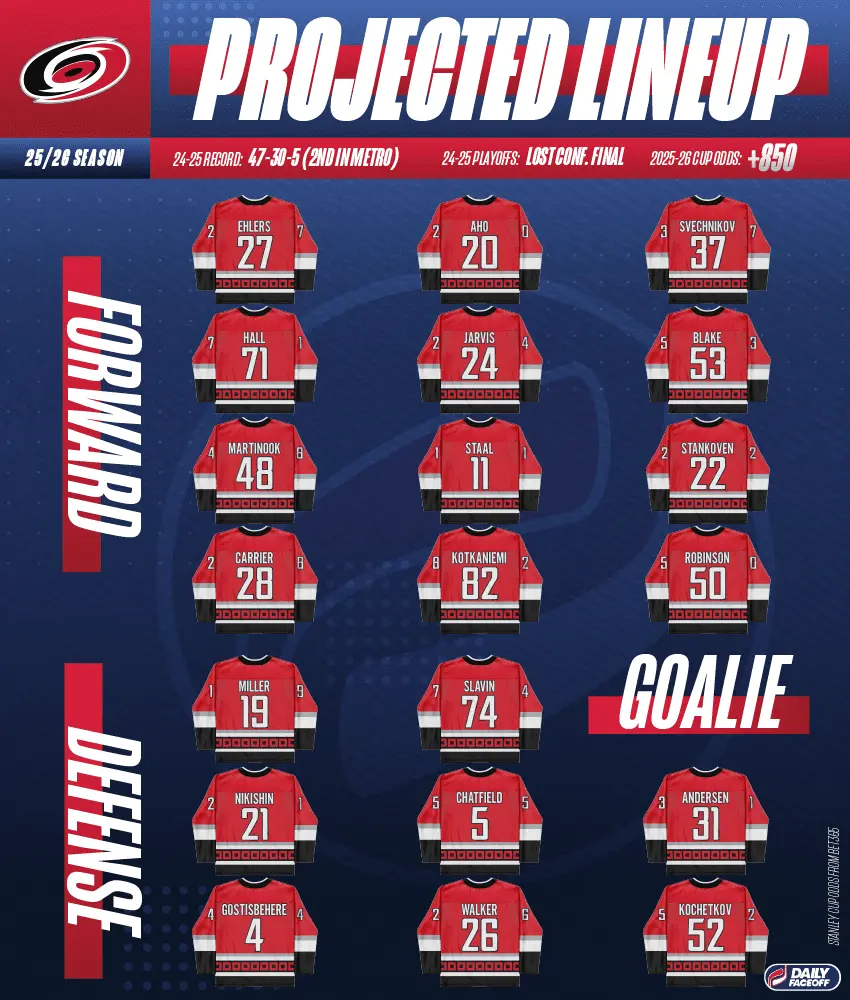 This offseason, Tulsky remained aggressive, securing a big-time forward for his top six by signing Nikolaj Ehlers and acquiring two-way blueliner K’Andre Miller from the New York Rangers. With several prospects breaking through last season and so much of the team’s core locked up long term, Carolina is positioned to take many more swings at a four-round playoff run. Does that finally happen in 2025-26?