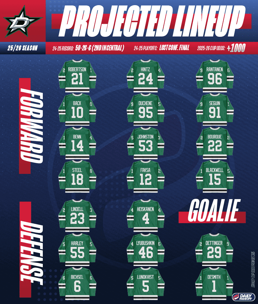 2. Is Mavrik Bourque trade bait? The Stars have had to sacrifice a decent chunk of their veteran forward depth to retain the likes of Rantanen, Hintz, Johnston, Heiskanen, and Oettinger. That’s an expensive core, and it’ll be a challenge for the Stars to remain under the cap this season and beyond. Bourque is one of their few cost-controlled pieces for the 2025-26 campaign, making a paltry $950,000, and he could take a big step forward this year after managing 25 points in 73 games last season. But if he stays closer to his current level, it’s easy to imagine the Stars looking to swap him for a more established piece — after all, they set that precedent last year with Logan Stankoven. It truly could go either way with Bourque, the Stars’ 2020 first-round pick.