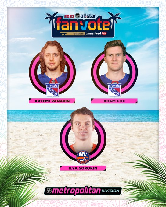 A pair of New York Rangers — Artemi Panarin and Adam Fox — will travel down to Florida alongside goaltender Igor Shesterkin, who will join forces with New York Islanders keeper Ilya Sorokin on Team Metropolitan.