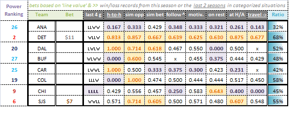 Sometimes teams perform well but don’t win, while other times vice versa (goaltending frequently makes it or breaks it). Therefore, it also seemed prudent to take a look at win/loss records when trying to decide which teams to back (and for what dollar amounts).