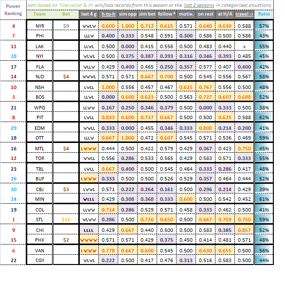 Sometimes teams perform well but don’t win, while other times vice versa (goaltending frequently makes it or breaks it). Therefore, it also seemed prudent to take a look at win/loss records when trying to decide which teams to back (and for what dollar amounts).