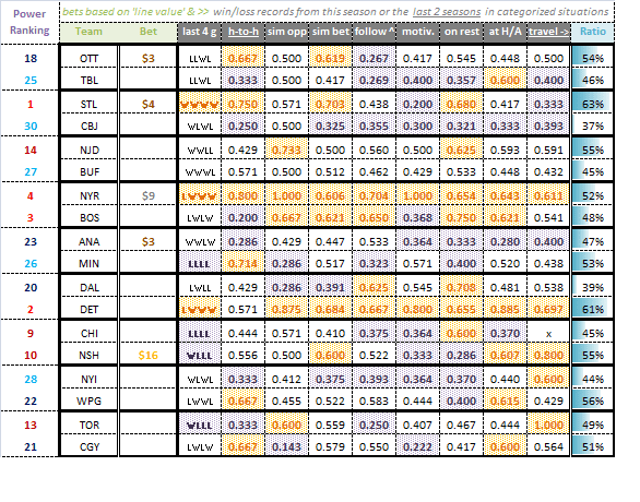 Sometimes teams perform well but don’t win, while other times vice versa (goaltending frequently makes it or breaks it). Therefore, it also seemed prudent to take a look at win/loss records when trying to decide which teams to back (and for what dollar amounts).