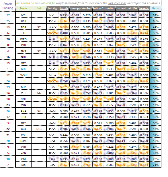 Sometimes teams perform well but don’t win, while other times vice versa (goaltending frequently makes it or breaks it). Therefore, it also seemed prudent to take a look at win/loss records when trying to decide which teams to back (and for what dollar amounts).