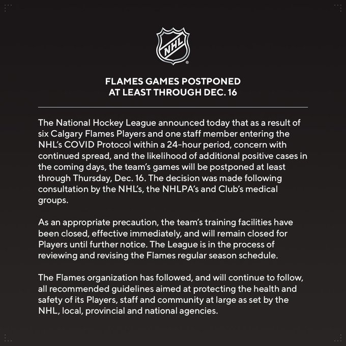 SCHEDULE UPDATE: @NHLFlames games postponed at least through December 16. media.nhl.com/public/news/15…