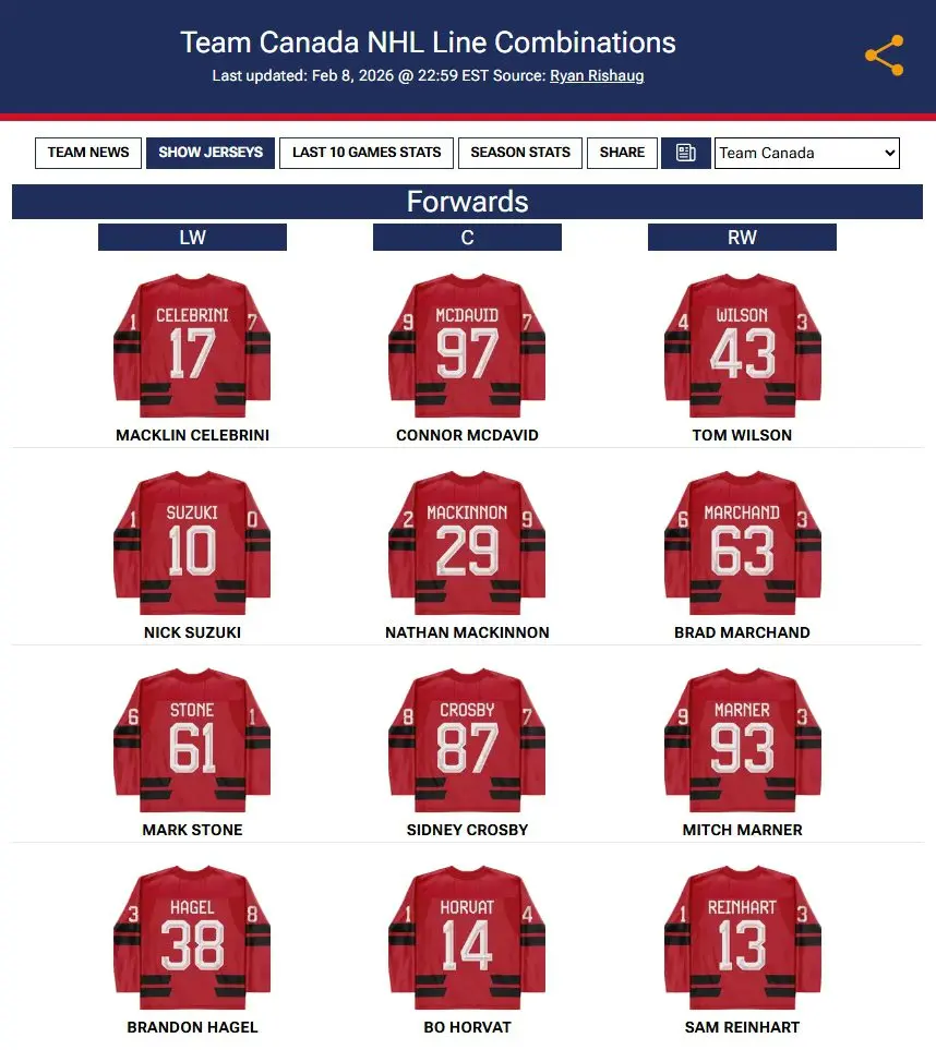 On the first day of practice, we saw Sidney Crosby center a line with Mark Stone and Mitch Marner, while Tom Wilson and Macklin Celebrini were on the wing with Connor McDavid. Meanwhile, the current NHL goal leader in Nathan MacKinnon was on a line with Brad Marchand and Nick Suzuki.