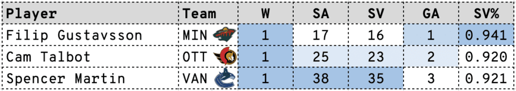 Despite missing their two top centres (Josh Norris and Tim Stützle), the Senators were able to win their third straight game on Wednesday. Following a scoreless first period, Shane Pinto opened the scoring just 1:28 into the second period with his 10th of the year. The Senators’ sixth-ranked power-play (27.4%) then went to work, with Drake Batherson (1G / 1A), Brady Tkachuk (1G / 1A), and Alex DeBrincat (3A) doing all of the damage.
