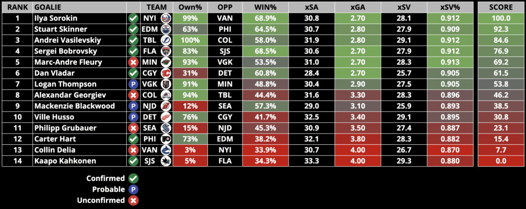 Goalie Rankings