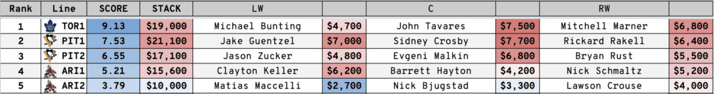 | Gaudreau – Jenner – Laine Johnson – Sillinger – Marchenko Bemstrom – Roslovic – Foudy Robinson – Kuraly – Olivier ——————————————————— Gavrikov – Peeke Berni – Gudbranson Blankenburg – Boqvist | Bunting – Tavares – Marner Jarnkrok – Kerfoot – Nylander Engvall – Kampf – Anderson Aston-Reese – Holmberg – Steeves ——————————————————— Rielly – Brodie Giordano – Holl Sandin – Liljegren |