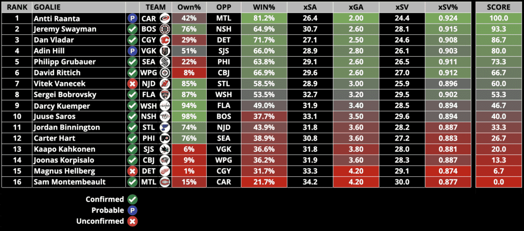 Goalie Rankings