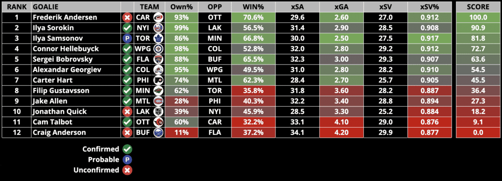 The Notebook includes everything you need to know to set your Season-Long and Daily Fantasy Lineups: including Injuries, Projected Lines and Pairings, Starting Goalie Rankings, and Value Picks (DFS).