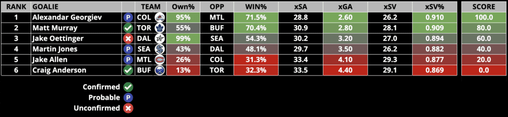 Goalie Rankings