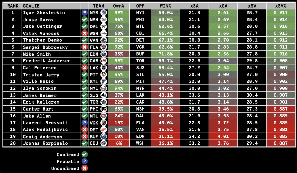 The Notebook includes everything you need to know to set your Season-Long and Daily Fantasy Lineups: including Injuries, Projected Lines and Pairings, Starting Goalie Rankings, Value Picks (DFS), and previews from our DFS Premium Package.