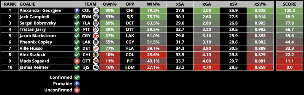 The Notebook includes everything you need to know to set your Season-Long and Daily Fantasy Lineups: including Injuries, Projected Lines and Pairings, Starting Goalie Rankings, and Value Picks (DFS).