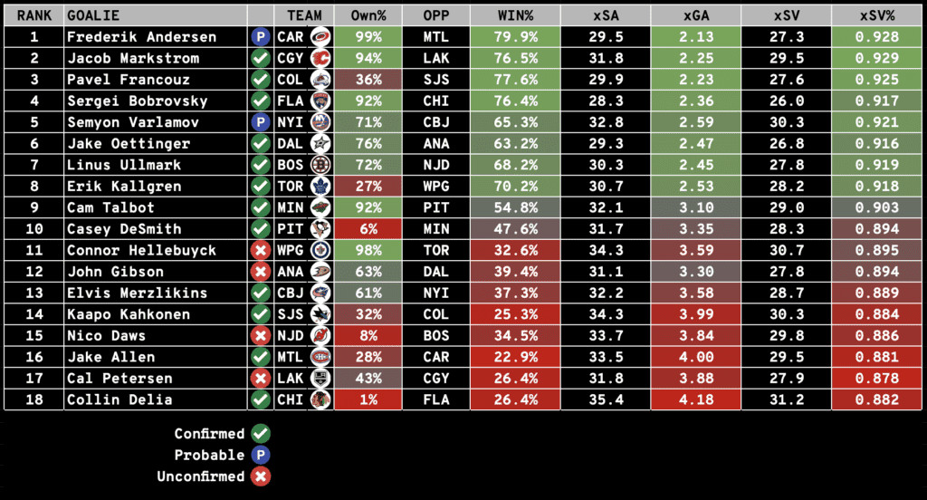 The Notebook includes everything you need to know to set your Season-Long and Daily Fantasy Lineups: including Injuries, Projected Lines and Pairings, Starting Goalie Rankings, Value Picks (DFS), and previews from our DFS Premium Package.