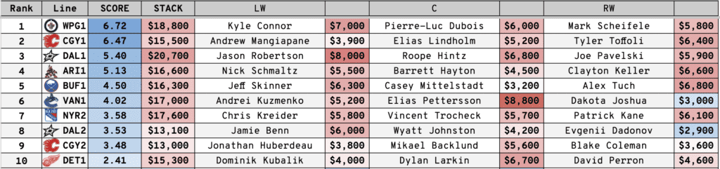 | Connor – Dubois – Scheifele Ehlers – Namestnikov – Wheeler Neiderreiter – Lowry – Appleton Barron – Stenlund – Kuhlman ——————————————————— Morrissey – DeMelo Dillon – Pionk Samberg – Schmidt | Kubalik – Larkin – Perron Suter – Copp – Raymond Erne – Veleno – Luff Berggren – Czarnik – Chiasson ——————————————————— Walman – Seider Edvinsson – Chiarot Maatta – Hagg |