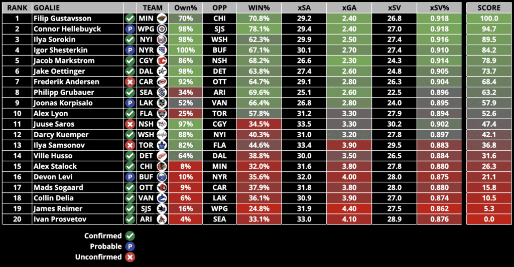 Goalie Rankings