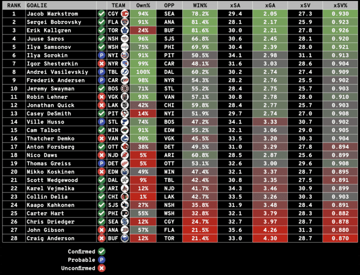 The Notebook includes everything you need to know to set your Season-Long and Daily Fantasy Lineups: including Injuries, Projected Lines and Pairings, Starting Goalie Rankings, Value Picks (DFS), and previews from our DFS Premium Package.