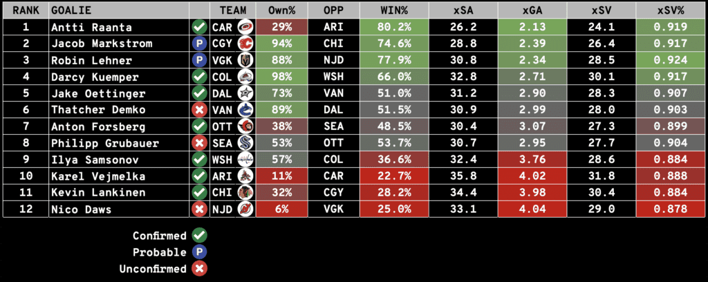 - [CAR] Frederik Andersen (undisclosed) will miss at least one week.