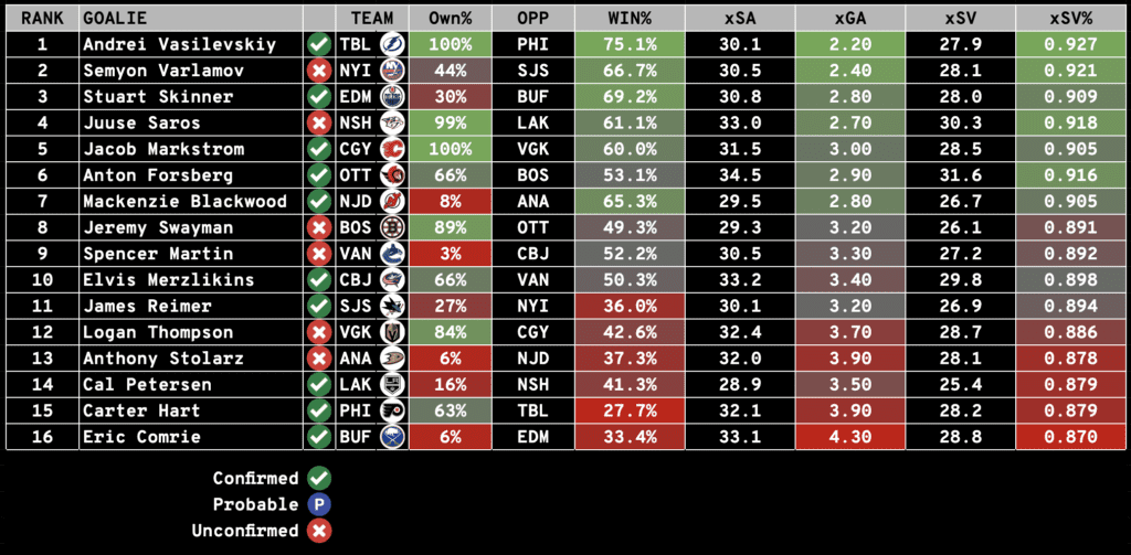 The Notebook includes everything you need to know to set your Season-Long and Daily Fantasy Lineups: including Injuries, Projected Lines and Pairings, Starting Goalie Rankings, and Value Picks (DFS).
