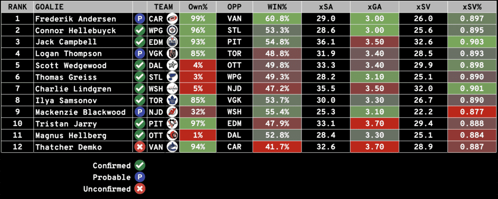 The Notebook includes everything you need to know to set your Season-Long and Daily Fantasy Lineups: including Injuries, Projected Lines and Pairings, Starting Goalie Rankings, and Value Picks (DFS).