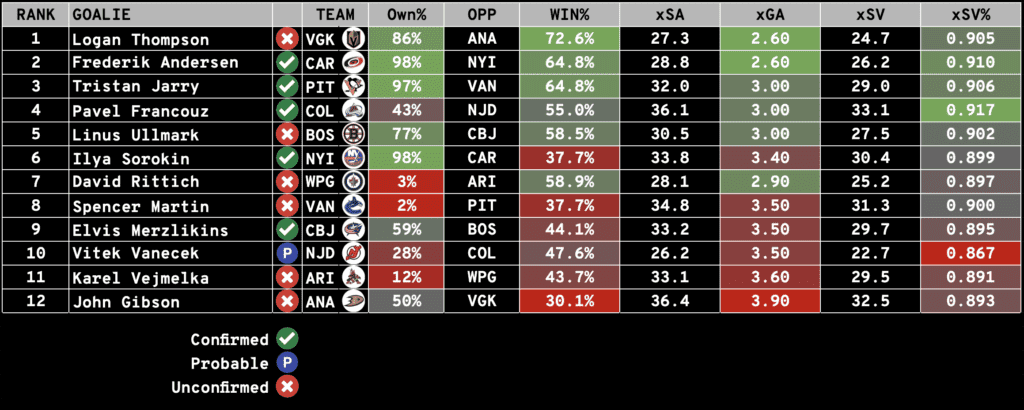 The Notebook includes everything you need to know to set your Season-Long and Daily Fantasy Lineups: including Injuries, Projected Lines and Pairings, Starting Goalie Rankings, and Value Picks (DFS).